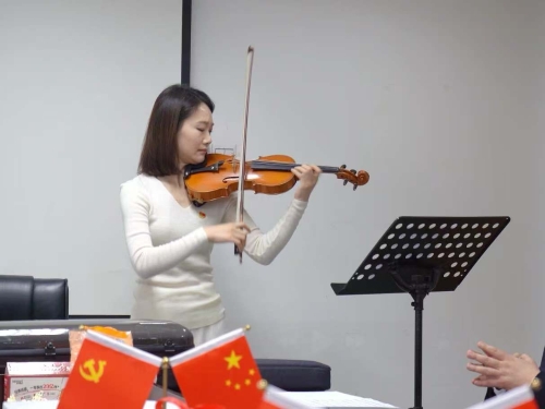 为引导党员、干部在活动中深刻认识“中央和国家机关没有脱离政治的业务,也没有脱离业务的政治”,乐团党委指导乐队艺术家代表积极参与此次活动。乐队小提琴艺术家姜璐围绕活动主题,现场演奏了红色经典曲目《我和我的祖国》。通过理论学习和艺术表演相叠加的方式,不仅让每一名聆听者找到情感上的共鸣,也让大家在“寓教于乐”中提升了政治素养,重温了“真理的味道”,进一步激发了大家的使命担当意识。