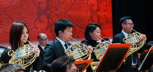 音乐会在一曲极具东方韵味的《梁祝》中拉开了帷幕,悠扬深情、扣人心弦的旋律,一开场便调动起在场师生对音乐的热情,掌声雷动。柴可夫斯基《波罗乃兹舞曲》、弗朗兹·雷哈尔《金银圆舞曲》、鲍罗丁《波罗维茨人舞曲》或激昂、或欢快,令人沸腾。